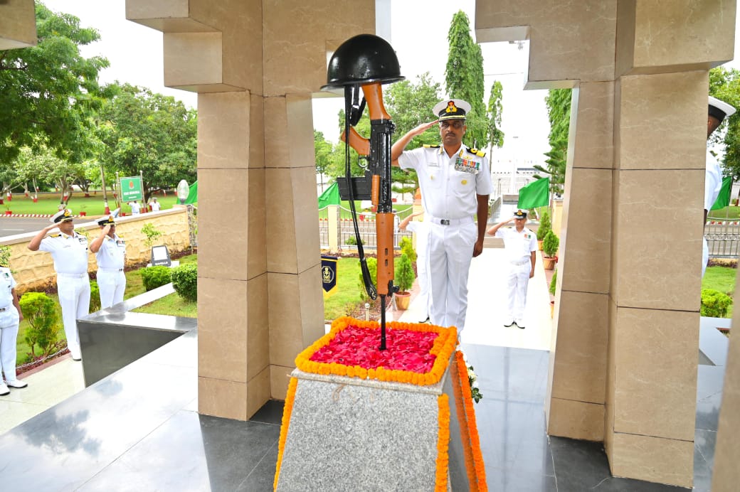 Khordha, 26/7: INS Chilka commemorated Kargil Vijay Diwas with solemn reverence to honour the valour and sacrifice of the Indian Armed Forces during the Kargil War of 1999.A wreath laying ceremony was conducted at the War Memorial. Commodore B Deepak Aneel, Naval Officer-in-Charge (Odisha) laid the wreath on behalf of all ranks. The ceremony stood as a poignant reminder of the bravery displayed during Operation Vijay and inspired next generation of sea warriors to uphold the proud legacy of those who made the ultimate sacrifice for the nation.