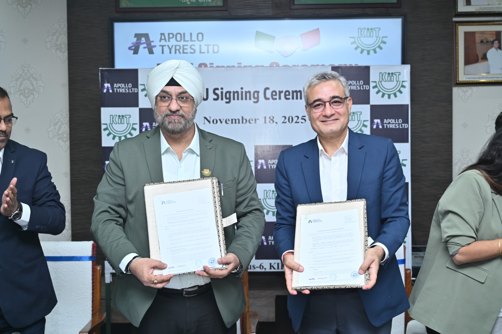 An MoU has been signed today between KIIT and Apollo Tyres Ltd, creating India’s first strategic academic collaboration between a university and a tyre manufacturer. Through this partnership, KIIT will offer a specialised bucket of electives covering tyre science, tyre design, manufacturing, testing, and sustainability — areas that have never before been integrated formally into an engineering curriculum in India.