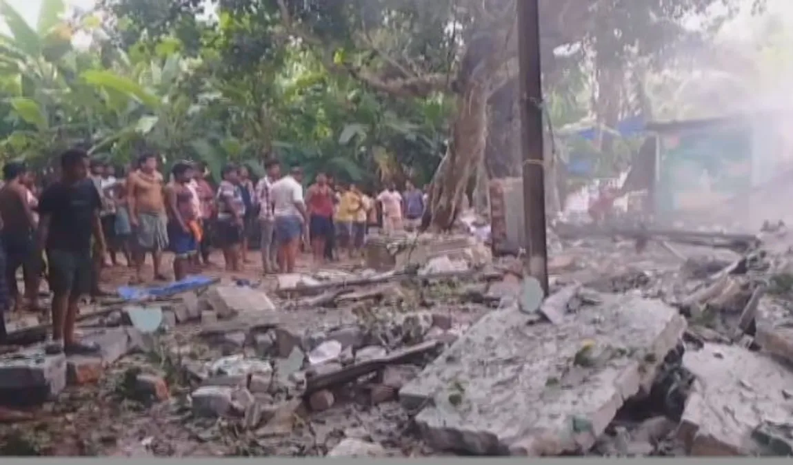 According to sources, the explosion took place around 11 am while the victims(two brothers) were allegedly preparing illegal fireworks and explosives. The explosion was so massive that it blew off the entire house.
